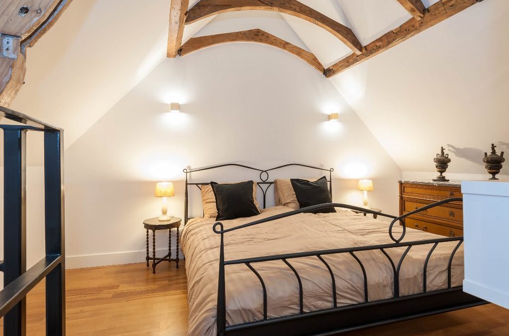 This duplex apartment has a high ceiling of 375 cm!! Also at the top floor the rounded wooden beems are back in sight!